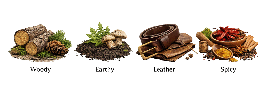 Woody • Earthy • Leather • Spicy